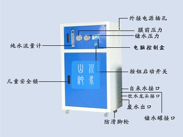 機器尺寸:高95CM*正面寬55CM*前后寬35CM 額定出水量:100L/H
