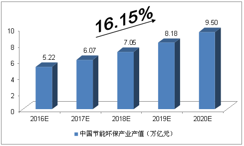 據國際知名咨詢機構預測,2020年,中國節能環保產業產值預計達10萬億元。未來四年(2020-2023)年均復合增長率約為10.6%,預測在2023年總產值將接近13.5萬億元。市場空間巨大。